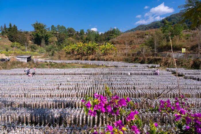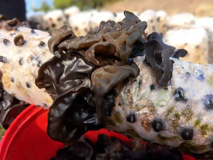 龙川江畔湿润的气候与肥沃的土壤,孕育出的黑木耳品相上乘——一面网灰一面墨黑,泡发率可达1:18,妥妥的一级品质。当地金秋十月播种菌包,冬月便能采收,采摘期可持续至次年五六月份。“这墒我们已经摘了10多桶,大概400多斤!”沈会香捧着刚采收的木耳,笑意盈盈,她熟练地分享晾晒诀窍,“晒到摸着脆生生的,就算干透了。”