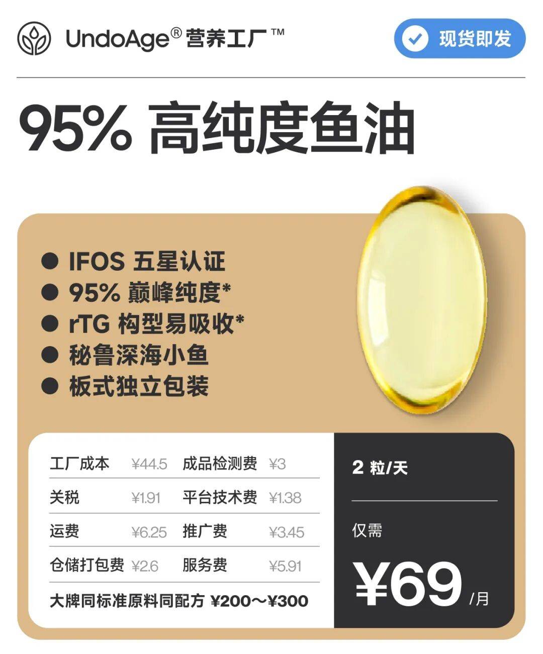 比如他们的鱼油,95%高纯度,国际IFOS权威认证,同品质的市面上要大几百,他们一个月下来只要69。